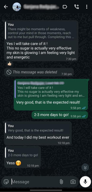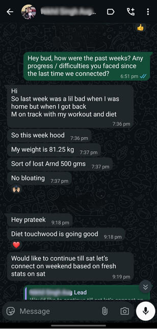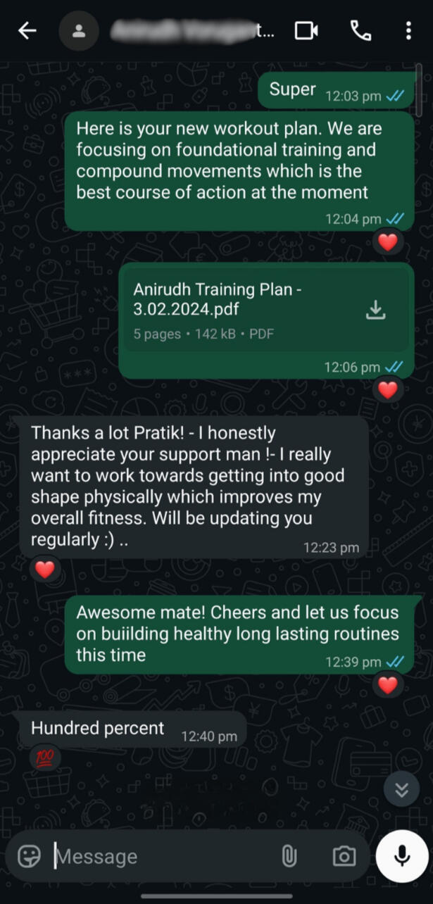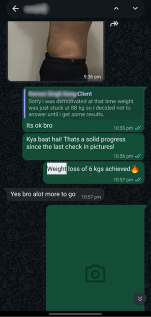 Extremely dedicated guy. He kept records of every gram lost and reported back to me with consistency and closely followed the diet and workout which I gave him. Ended up losing over 8kg in his journey!