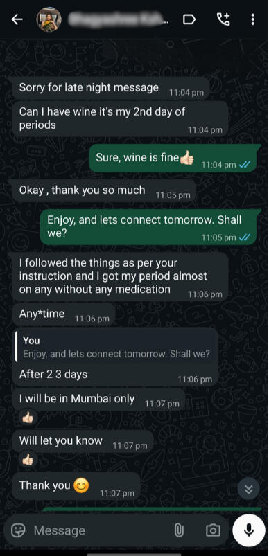 PCOD reversed naturally. A dedicated girl who for the first time she got her periods without any Medication which is a huge win! Even though she lived in a joint family, she continued on with her diet and routine consistently.